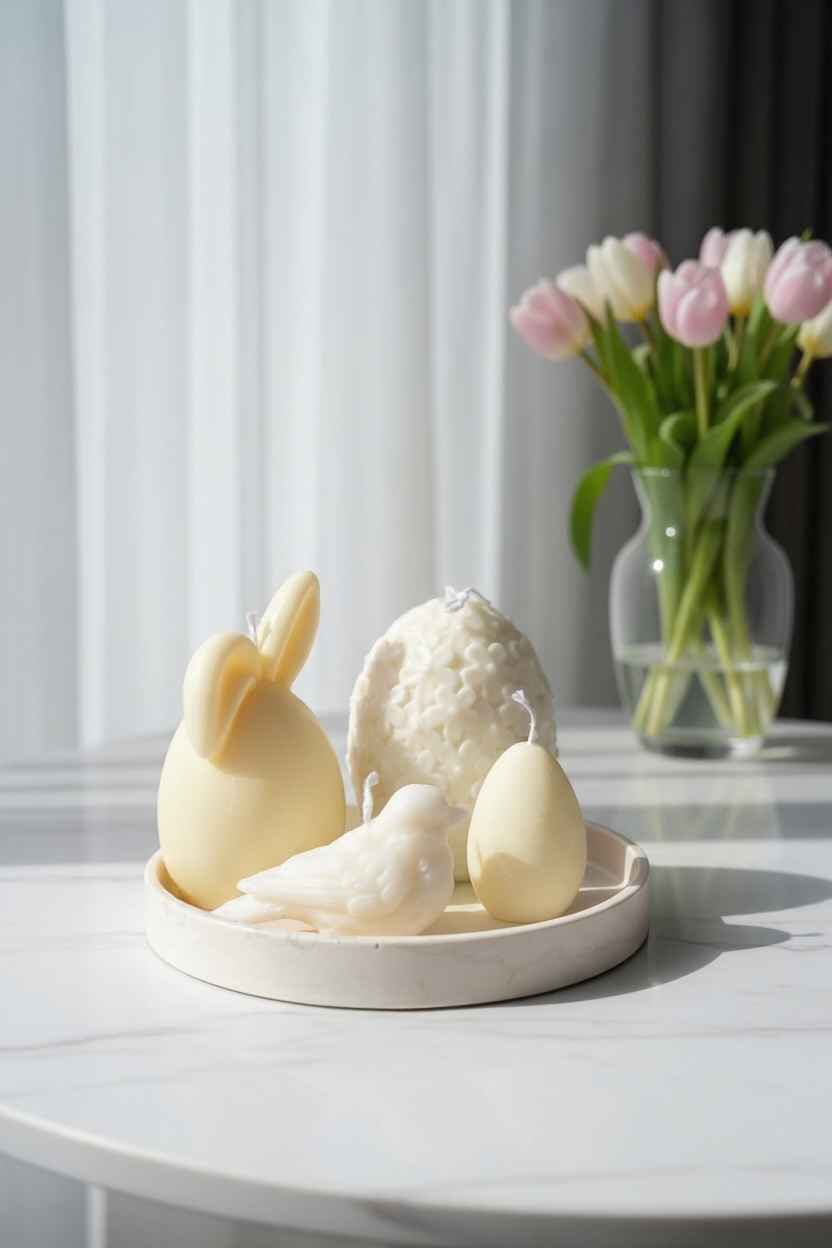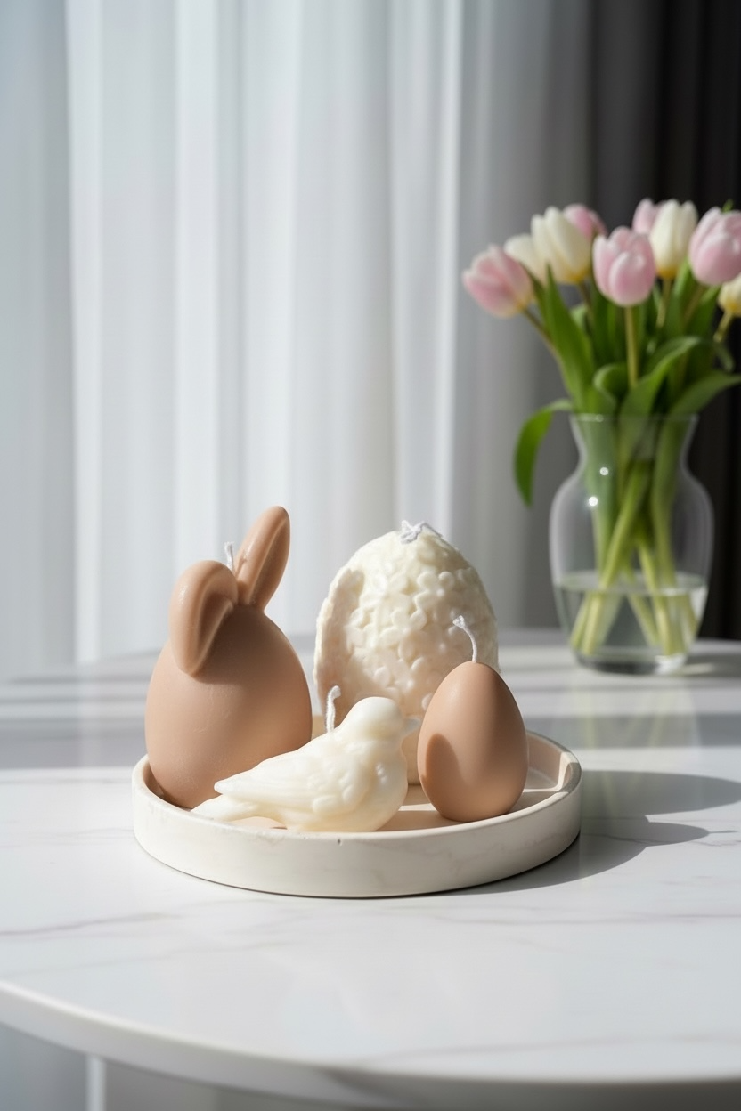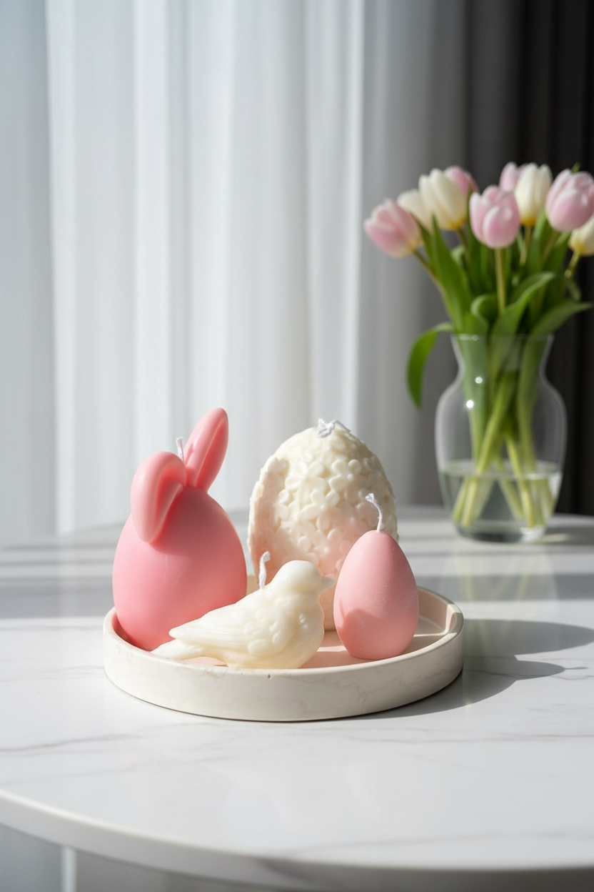 Available with soy wax candles in white, beige, or soft pink, making it a perfect seasonal accent for your table, shelf, or Easter décor.
