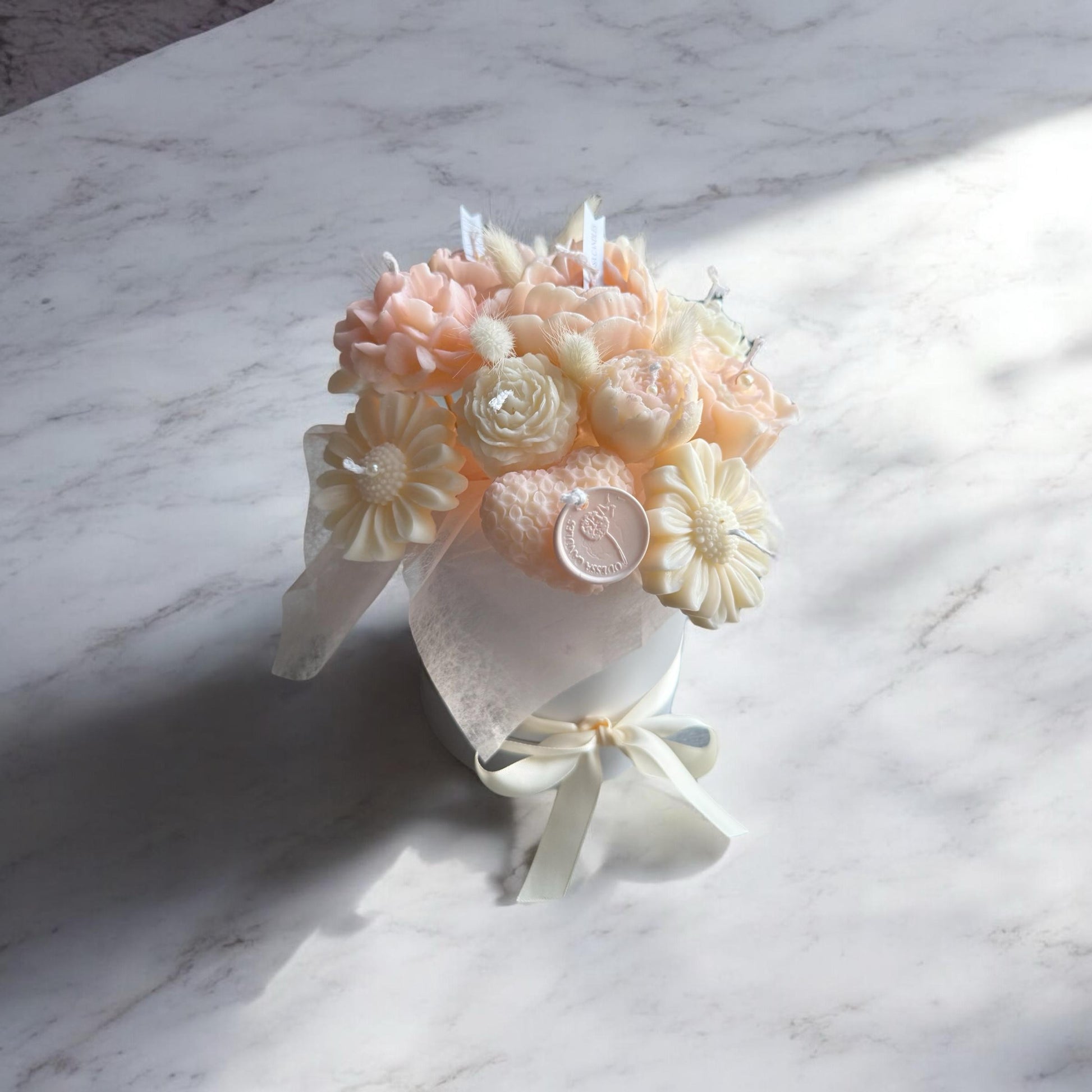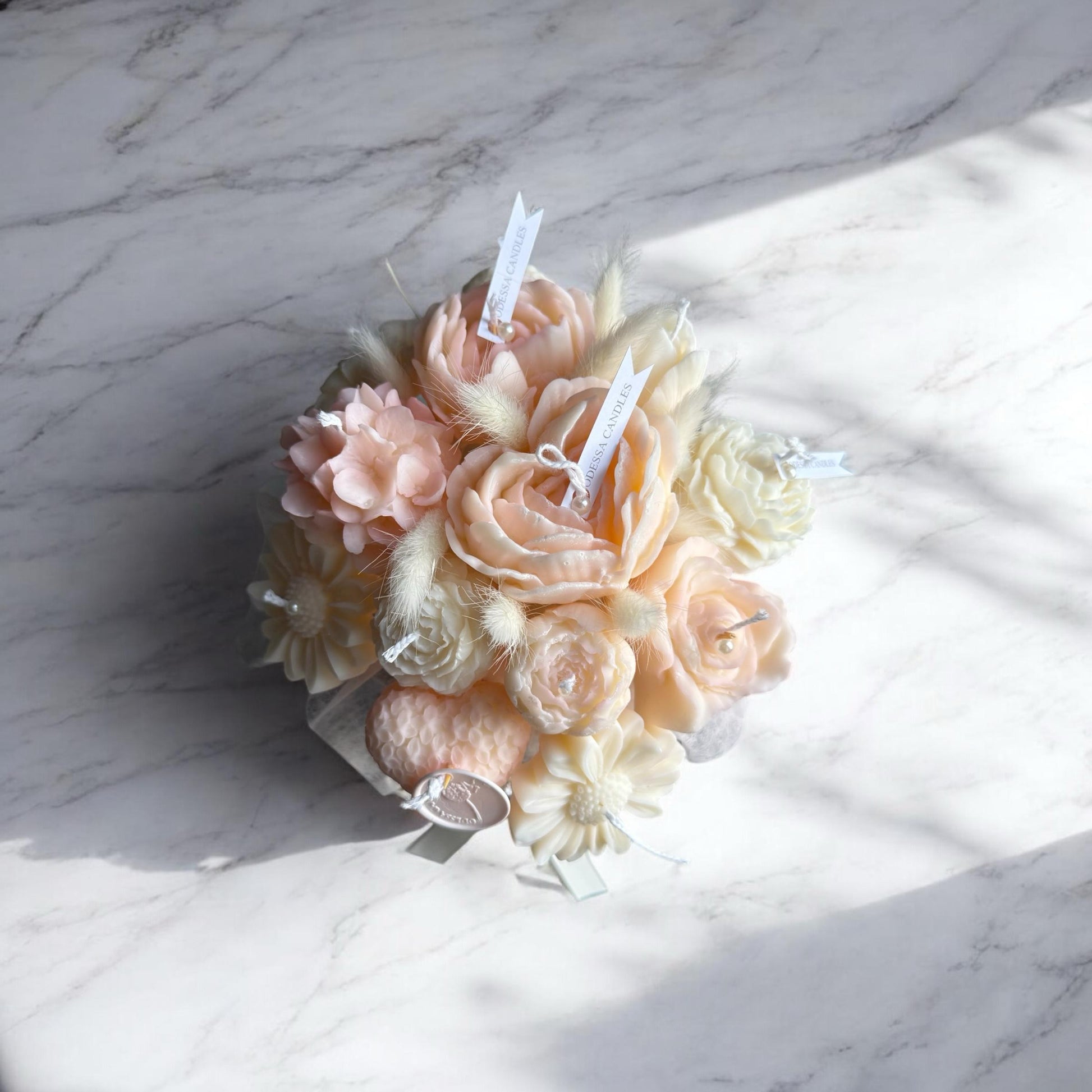 A poetic fusion of elegance and craftsmanship, the Eternal Peach Bouquet is a stunning arrangement of handcrafted flower-shaped candles. Designed to evoke the softness and beauty of fresh blooms, each petal is meticulously sculpted to create a bouquet that never fades.
